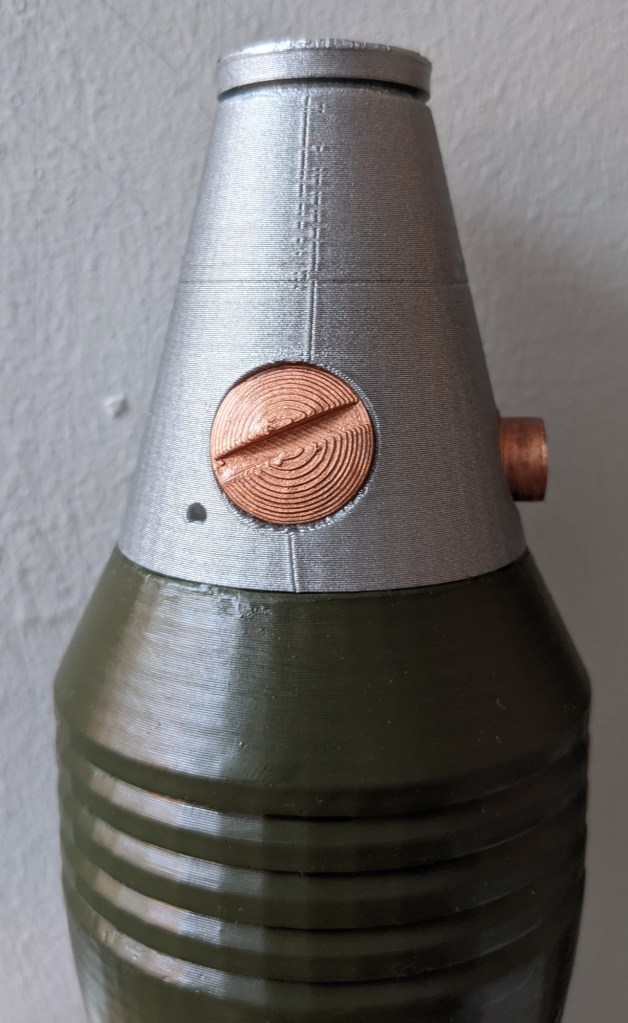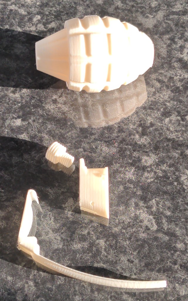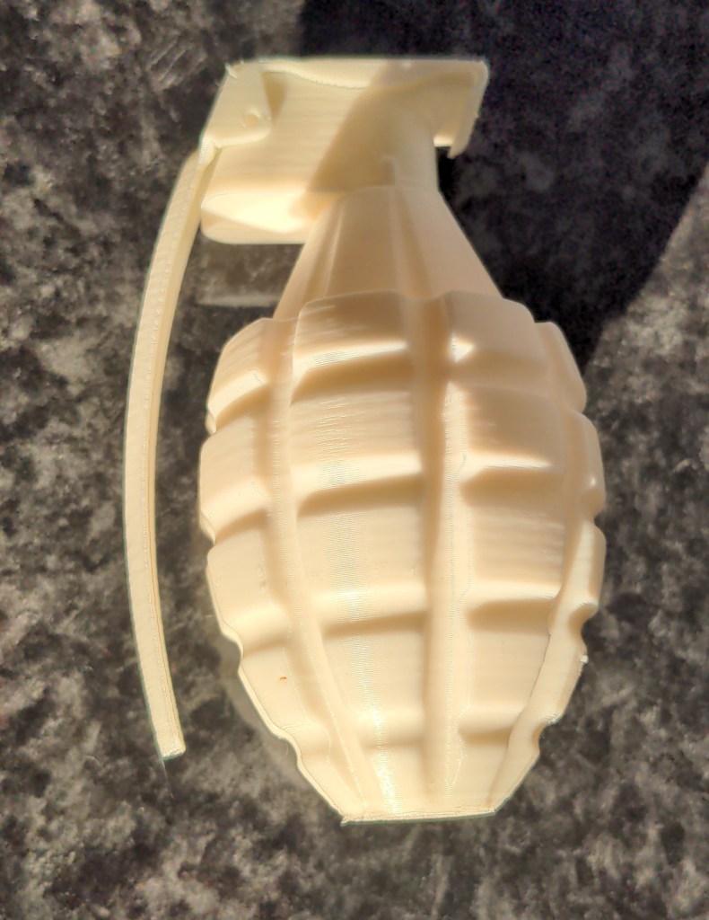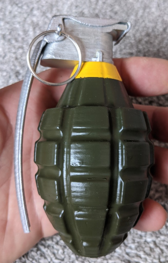 I was starting to find some other really interesting 3D files, but when I viewed them they turned out to be poor quality or just not accurate. However I then found a really good file for a 1:1 scale US grenade, printed in 4 parts. Fuze; Spoon; threaded bolt; body.
