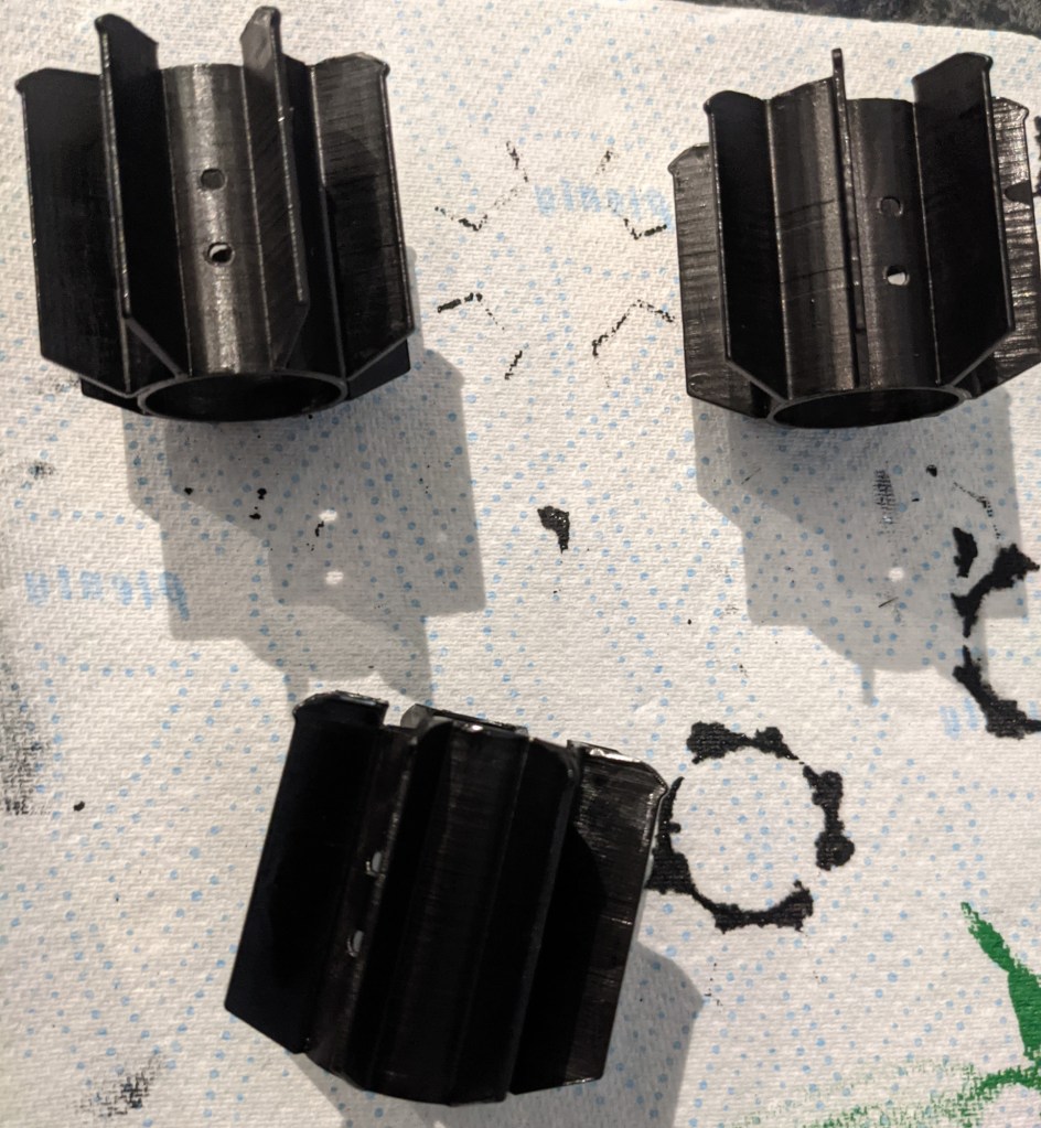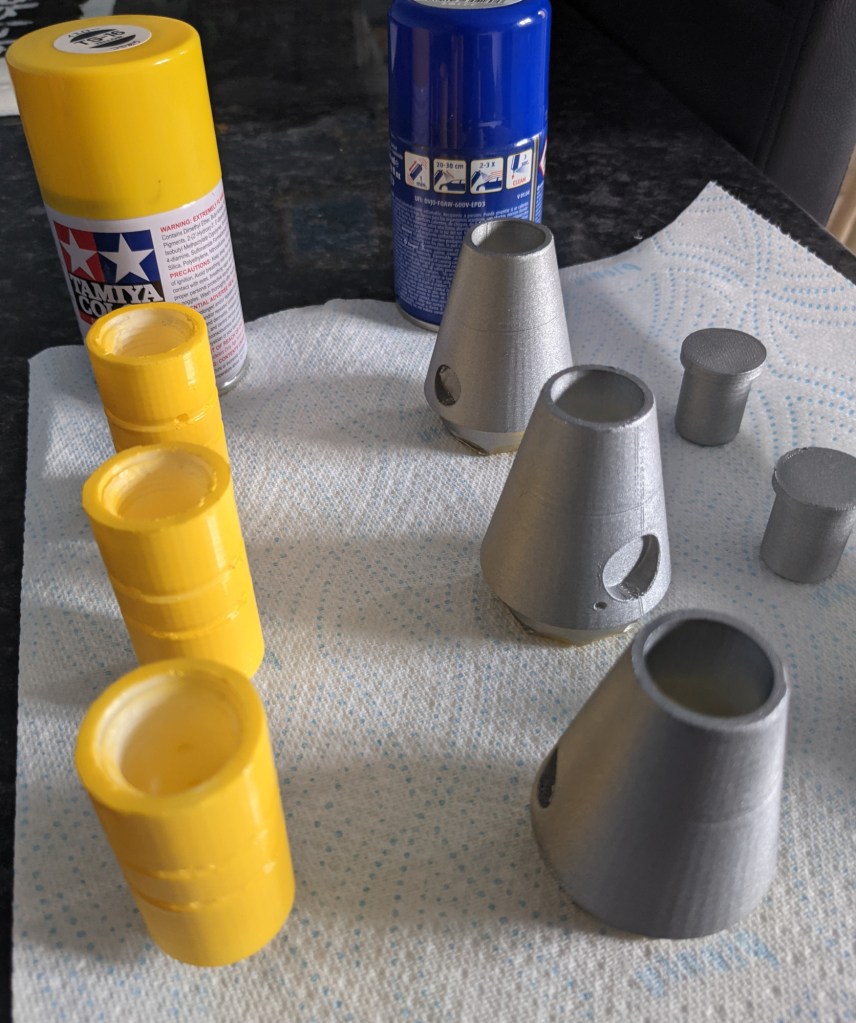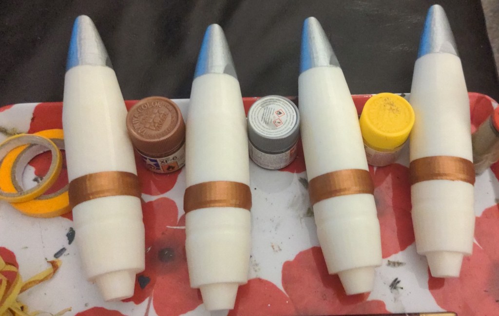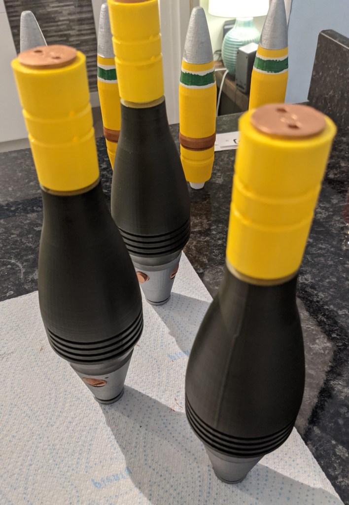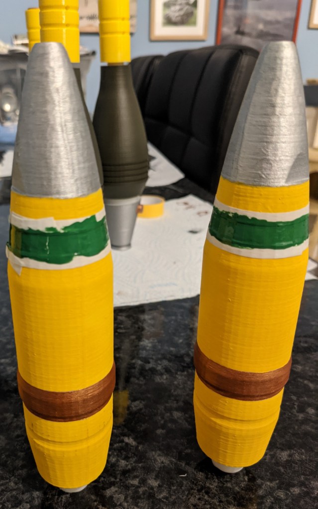 Once printed, I checked for fit and found two would need a bit of wiggling to get them in. So next step was painting them up. You may also notice that you can see the structure inside the projectiles. These aren’t solid plastic, but are still very sturdy.