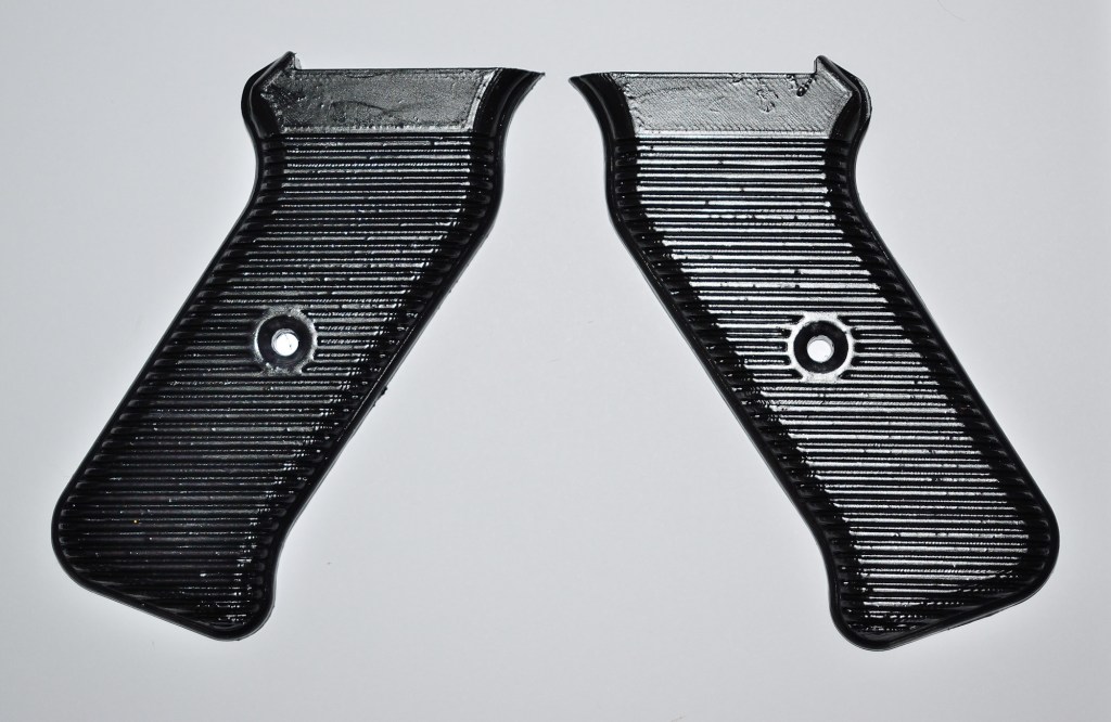 Very pleased with the result, I moved on to more one piece replicas. Same process was followed, with the file ‘sliced’ then the plain plastic result painted to match the original. For some reason I decided to print a load of pistol grips, mainly due to the fact I found so many!