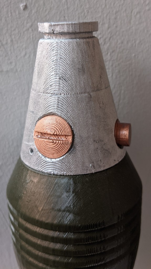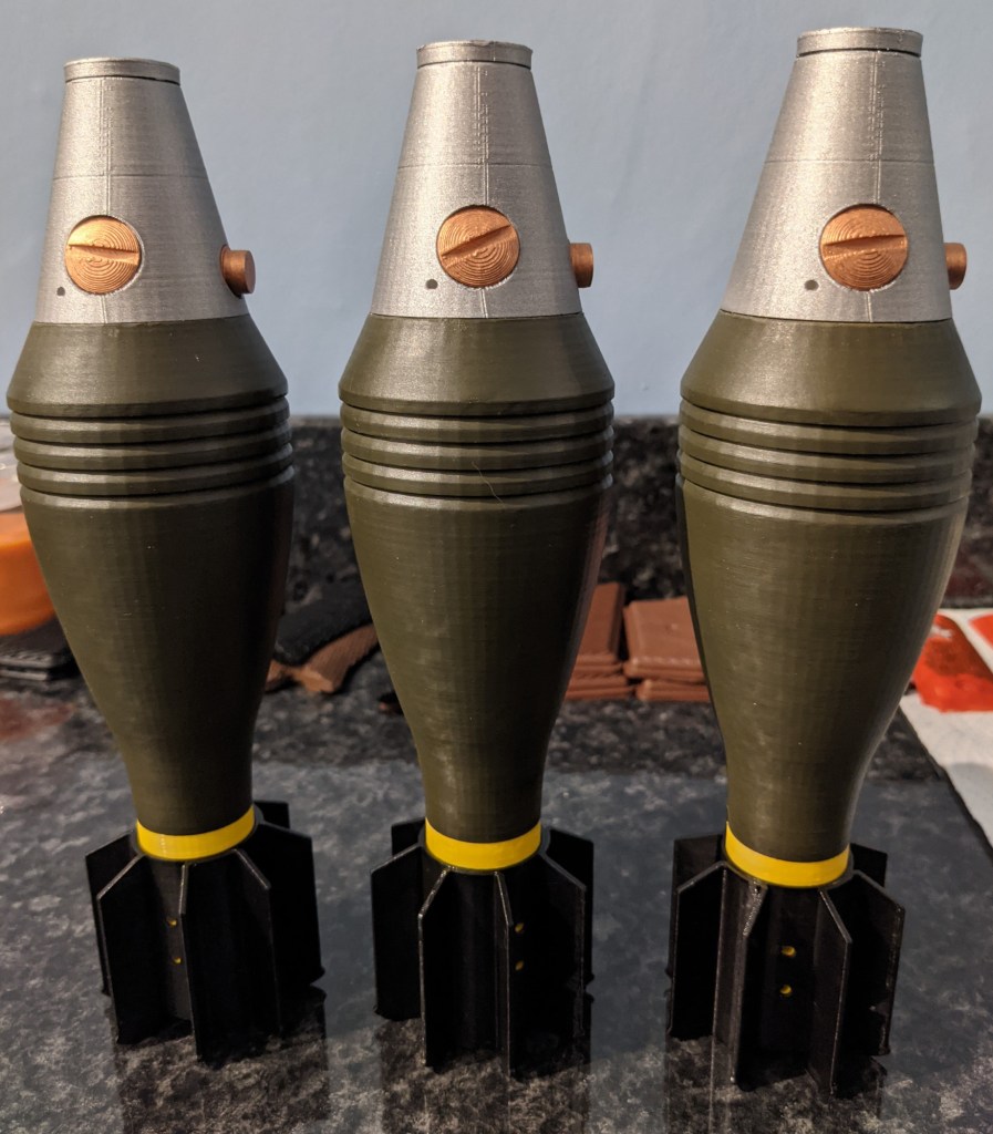 Next file I found was a 1:1 scale US 60mm mortar bomb. This came in quite a few parts and took a long time to print, but well worth it.
