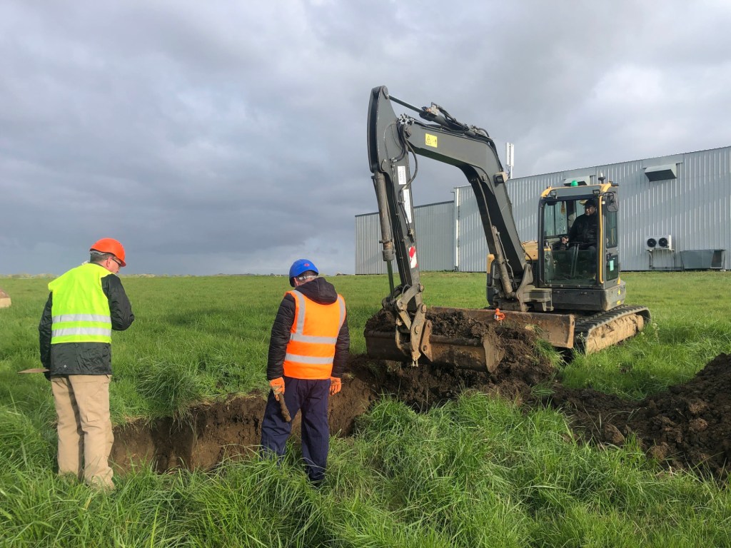 Our first visit involved the digging of the site of an old pond, just to the south of the hangar. This pond was a decent size, and being just outside the hangar, an ideal place for groundcrew to chuck stuff that wasn’t needed. We secured the use of a digger and set to. We hit on a fabulous spot with our first attempt, recovering large numbers of aircraft parts. Despite the fact the hole we dug filled with water very quickly, (it was an old pond….who knew!), we were able to recover some excellent finds, but unfortunately no tools!