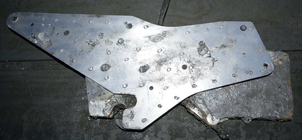 Finally found one. De Havilland. Mosquito engine/exhaust panel, or at least the right hand side of one.
