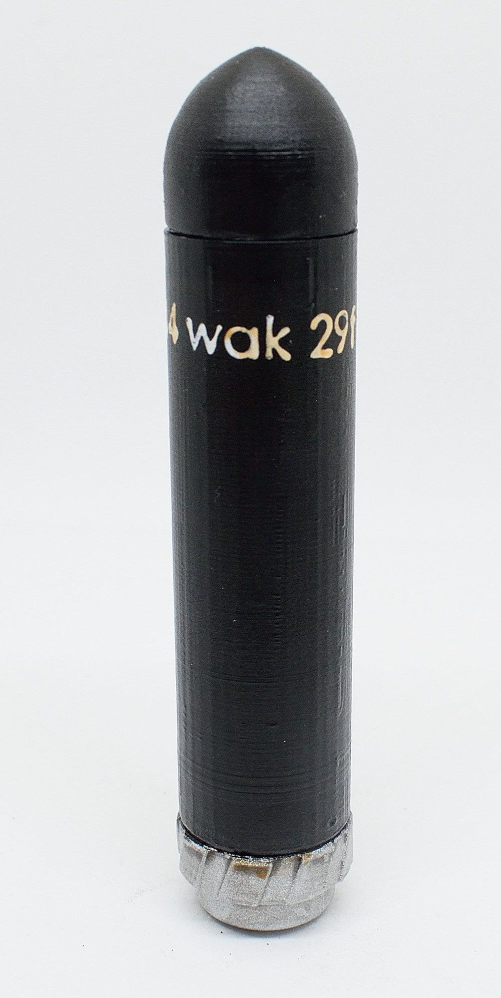 Mortar bomb for the 5 cm Granatwerfer 36. Comes as a solid model, the fuze is not removeable. Hand painted so there will be slight variations in the finish.