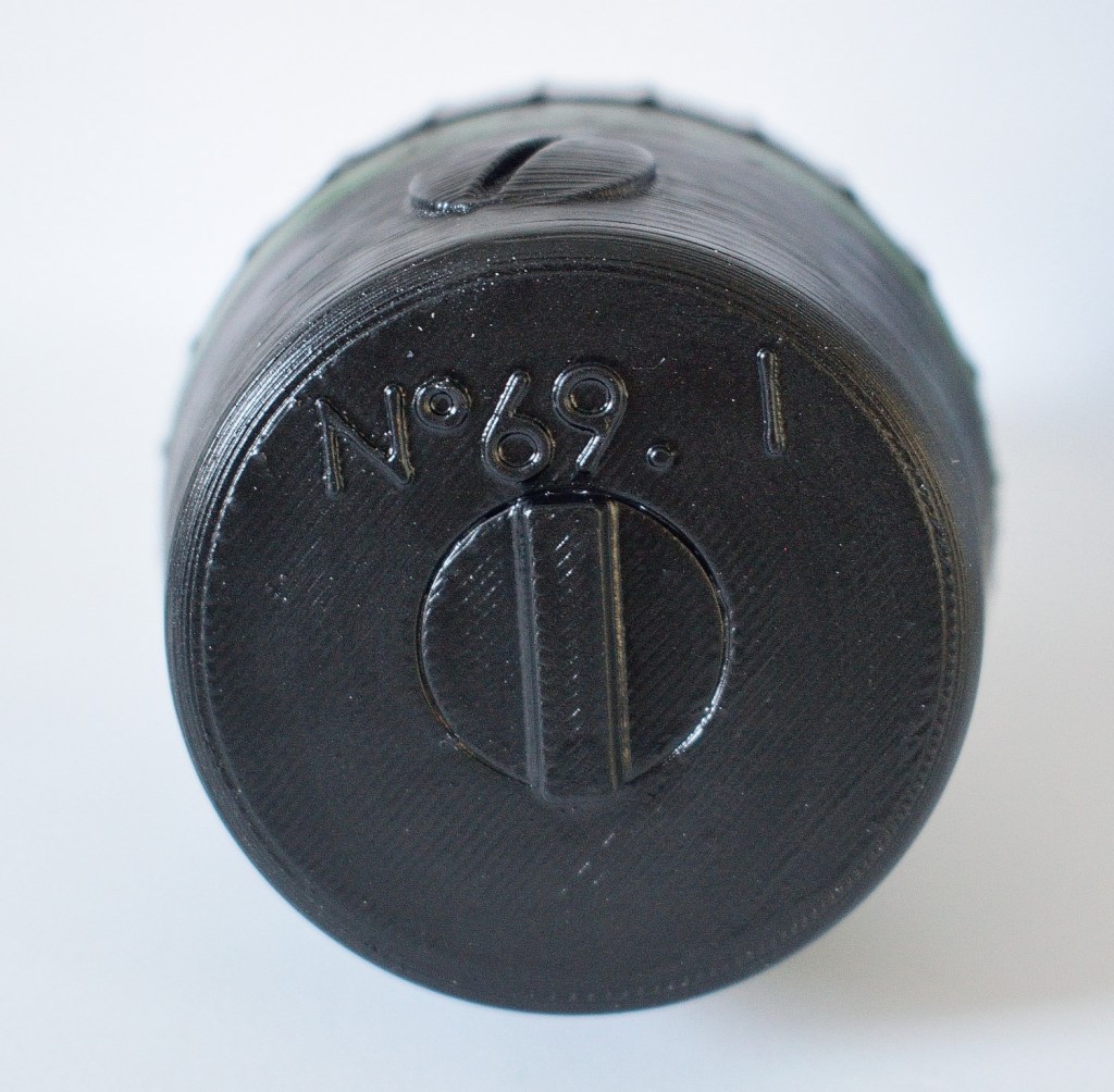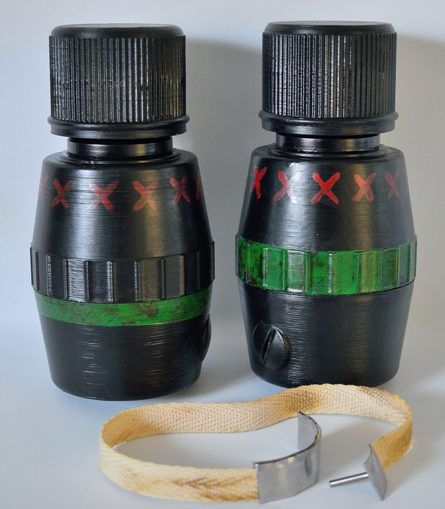 Replica No 69 with two different colour schemes and replica arming tape for the 247 fuze. Cap is removeable and the tape comes out when thrown, just like the original!.