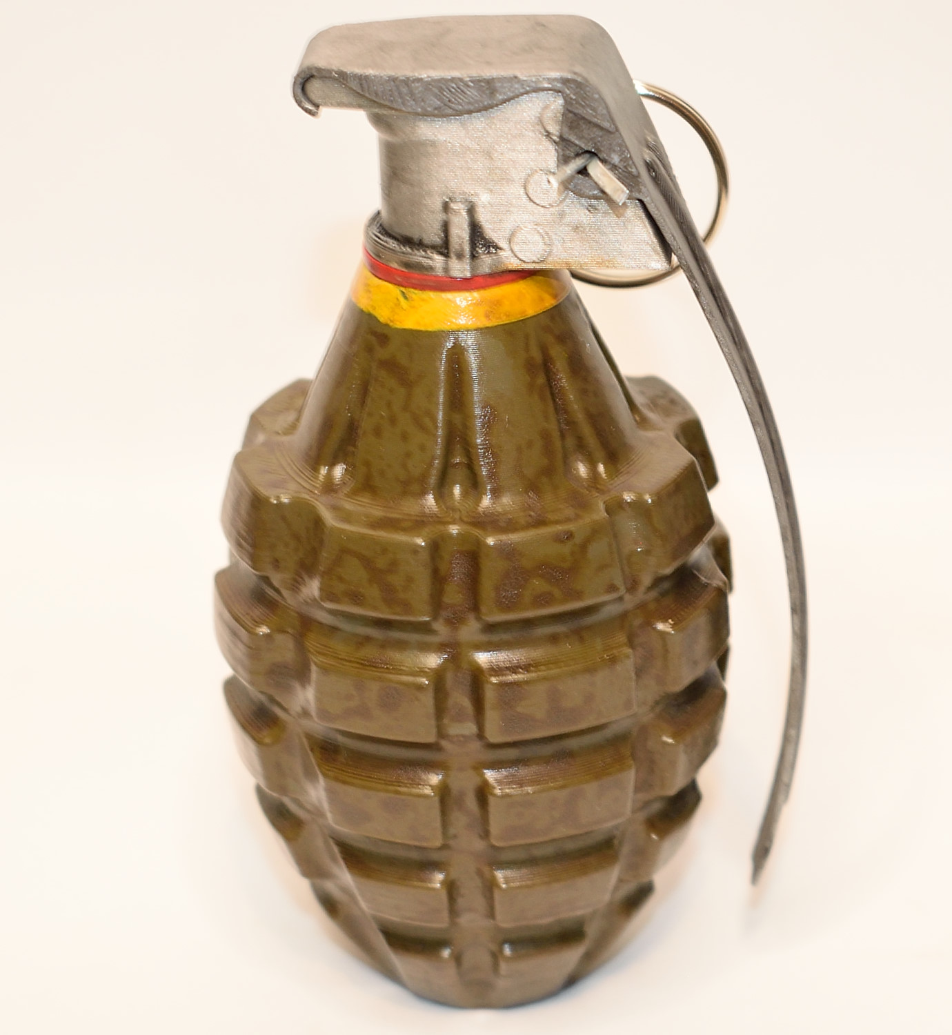 American M2 grenade, nicknamed pineapple. Comes with split pin and ring. Fuze and spoon completely removeable. The body is hollow so you can add sand or other material to it to give it some weight! Hand painted so there will be slight variations in the finish.