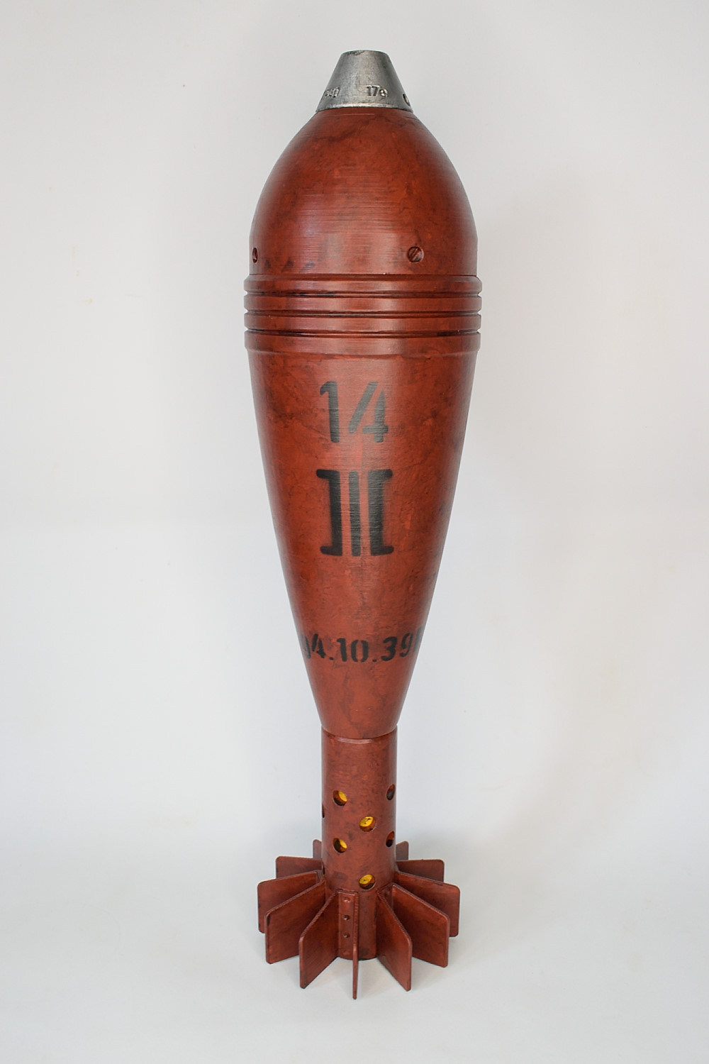 Brixia mortar bomb. Comes as a solid model, the cap is not removeable. Hand painted so there will be slight variations in the finish.